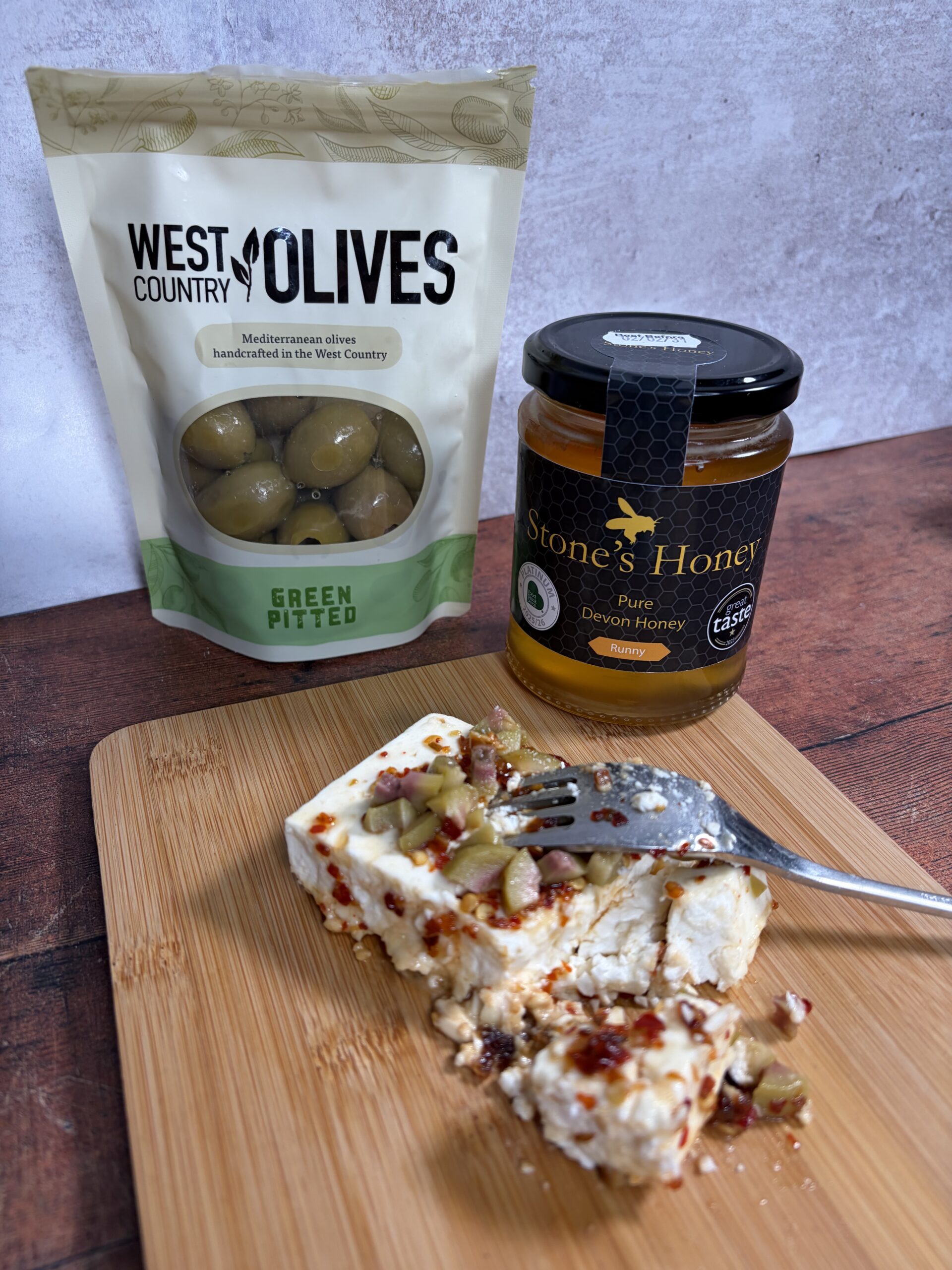 Drizzle a little extra Stones Devon honey on top for shine and sweetness. Garnish with fresh herbs if desired. Serve immediately with crusty bread or as part of a Mediterranean-style platter.